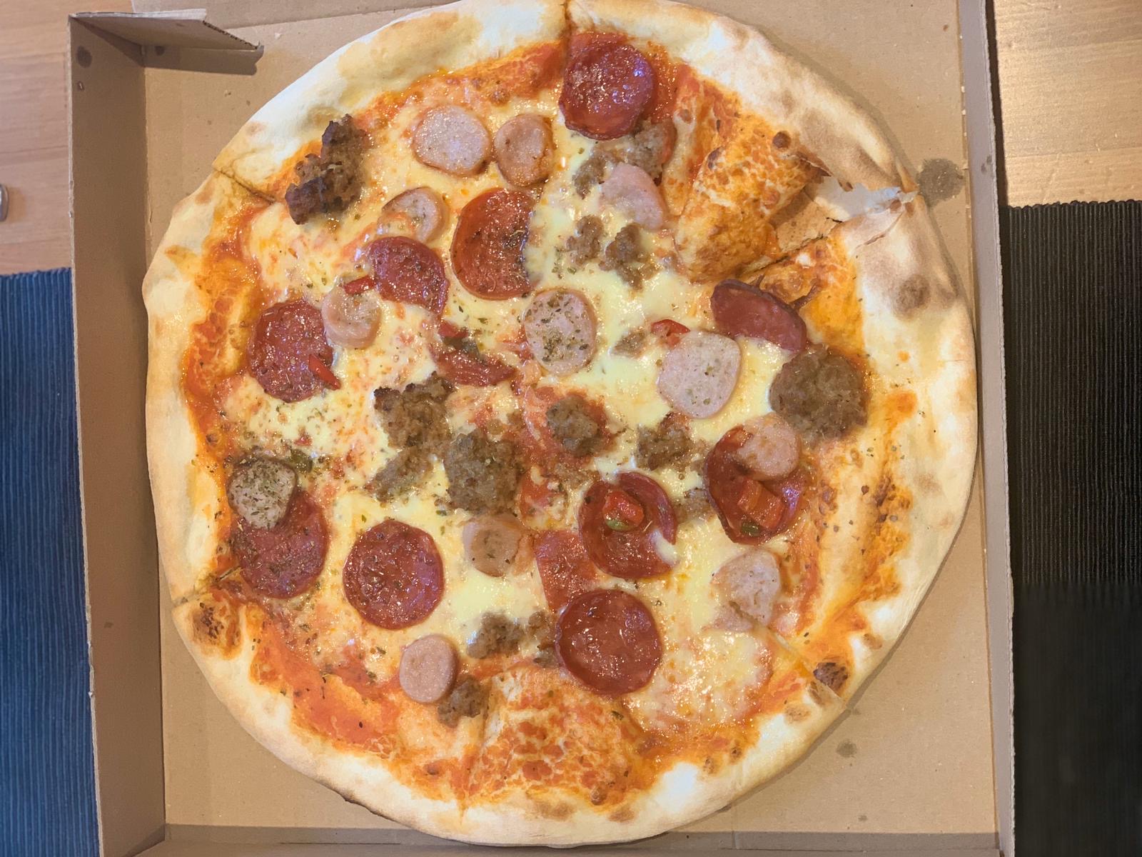 The calamari was cooked to perfection in a rich tomato sauce while the meatballs were chunky and prepared in a lovely tomato sauce, topped with plenty of cheese to add that bit extra. The garlic bread – half-and-half tomato and cheese – had a great crunch and flavour. It was the perfect Italian dish and would give any restaurant a run for their money. The pizza, a house speciality, had a lovely crispy base with plenty of meat and a nice kick from the chilli.”